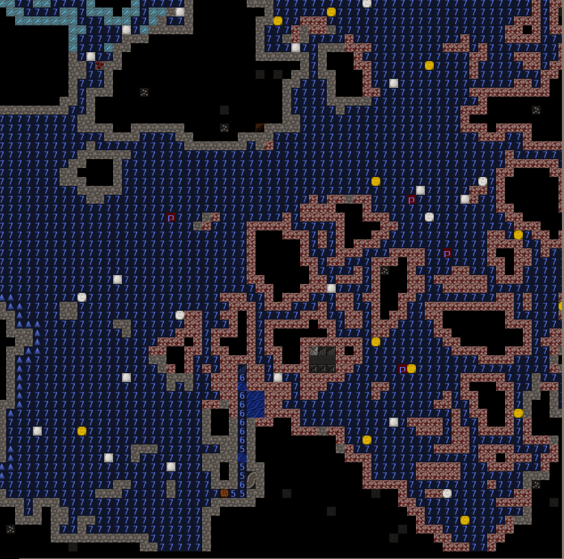 Further east and just outside the image is a sinister tundra the Slitted Tundra. The tundra is home to blueberries, bilbbeeries and Ice Wolves. Every so often a murk of unknown danger passes through the tundra. No one has been exposed to the murk to see what it does.
