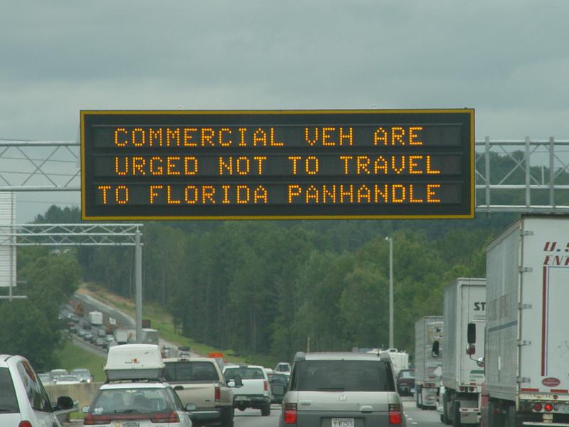 We left Atlanta about 2pm monday having decided to go to Jax instead of Tallahasse seeing as hurricane Francis was due to be centered over Tallahasse about the time we would be arriving. Turn out to be a good decision as we saw this sortly after starting out: