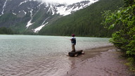 Got the hotel in Apgar and left room reading while I went back out in the drizzling rain. Went back up the length of Lake McDonald to the Lodge and did a geocache: GC9859: Old McDonald had a Lake. Went further back up toward Logan pass and started on the Trail of the Ceders which let to the Avalanche Lake trail, a two mile hike to a glacier lake and then back. The trail was clearly flooded in places and had to be redone. The lake was rather disappointing. It looks much better in pictures. Then there were the crazy people up there fishing in the rain. Saw a bear crossing the Avalanche Creek bridge on the way back but the camera was dying so no good photo.